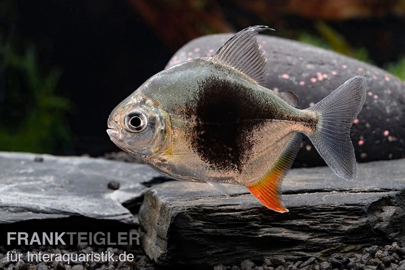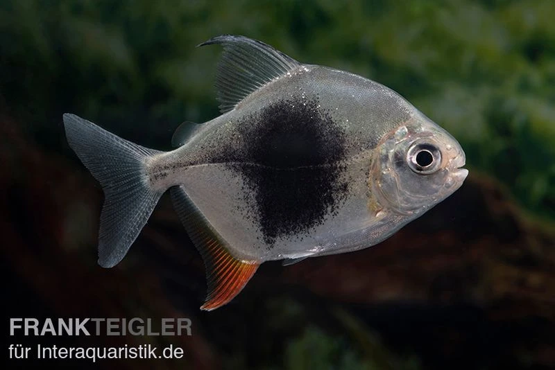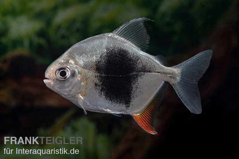 Der Blackberry Silver Dollar hört auf die wissenschaftliche Bezeichnung Myleus sp. Blackberry. Bei diesem Süßwasserfisch handelt es sich um einen optisch ansprechenden Vertreter aus der Familie der Sägesalmler (Serrasalmidae). Die ursprüngliche Heimat des Myleus sp. Blackberry ist Südamerika. Dort erstreckt sich sein Verbreitungsgebiet über den Amazonas, den Orinoco-See sowie das São Francisco-Becken. In ihrem natürlichen Habitat sind die Blackberry Silver Dollar bevorzugt in Gruppen anzutreffen. Die Schwarmfische ernähren sich weitestgehend vegetarisch. Das charakteristische Erkennungsmerkmal der Salmler ist der große schwarze Fleck auf der Körperseite, welcher sich markant von der ansonsten silbrigen Grundfärbung abhebt. Unsere Tiere sind Nachzuchten.